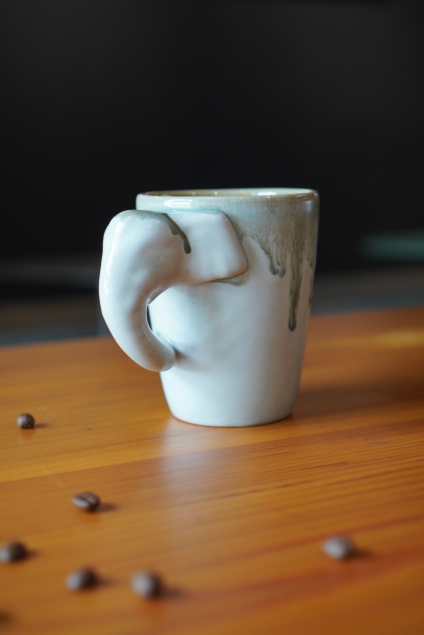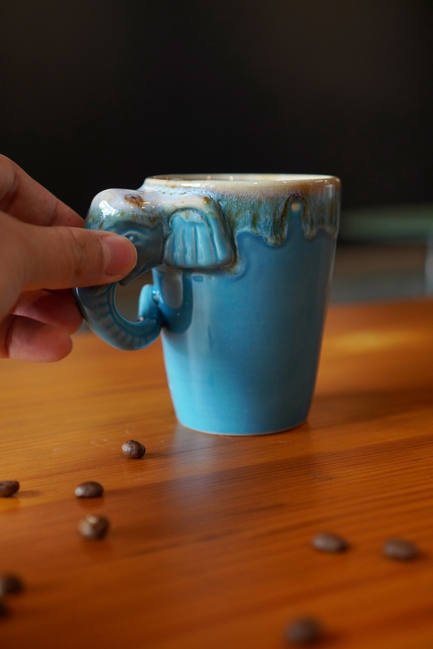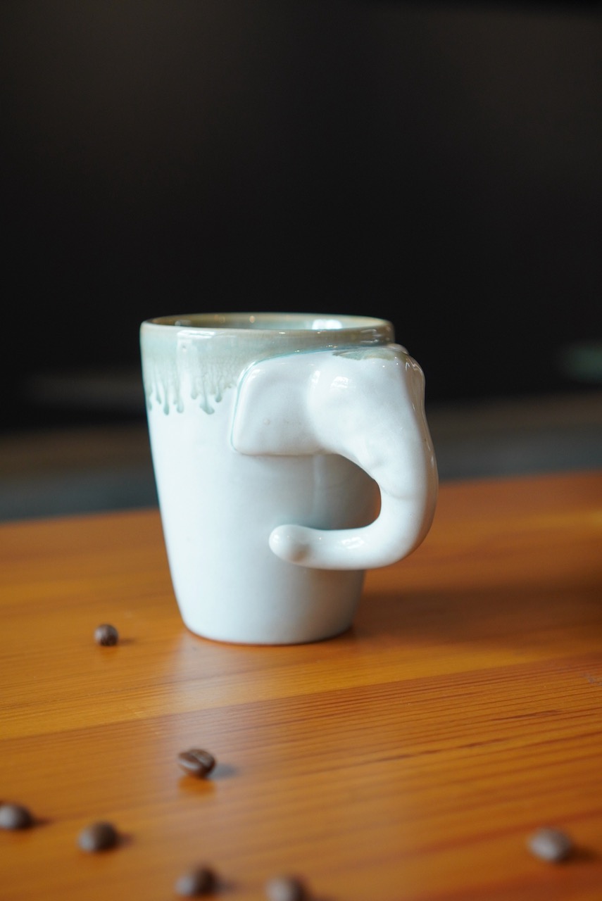 เริ่มต้นวันใหม่ของคุณด้วยความสุขสดใสไปกับ แก้วกาแฟเซรามิกรูปช้างแสนน่ารัก ของเราสิคะ! 🐘☕